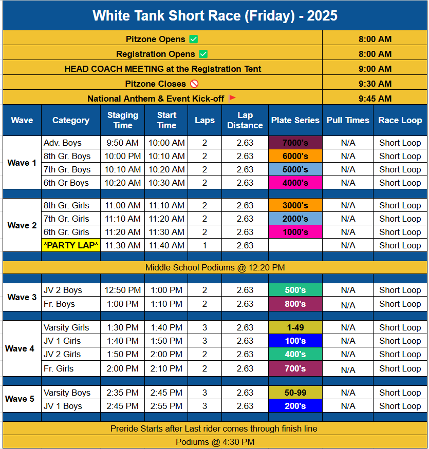 Courses will be open Thursday to Pre-Ride: 3PM to 6:30PM and Friday after racing has finished. We will announce on site an exact time.